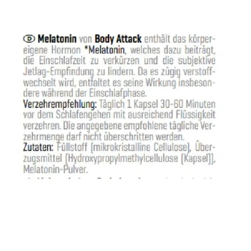 Zutaten Body Attack MELATONIN 60 Caps