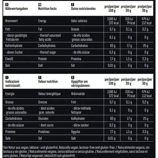 - 83 g Kohlenhydrate pro 100 g