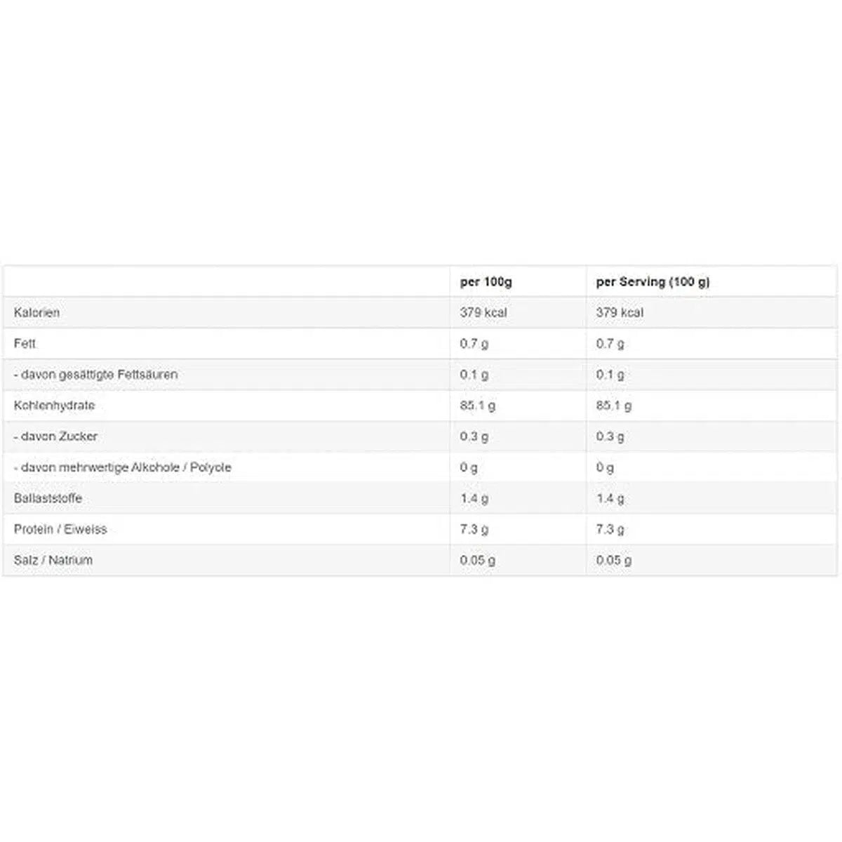 Zutaten: 100 % Reismehl (100% glutenfrei)