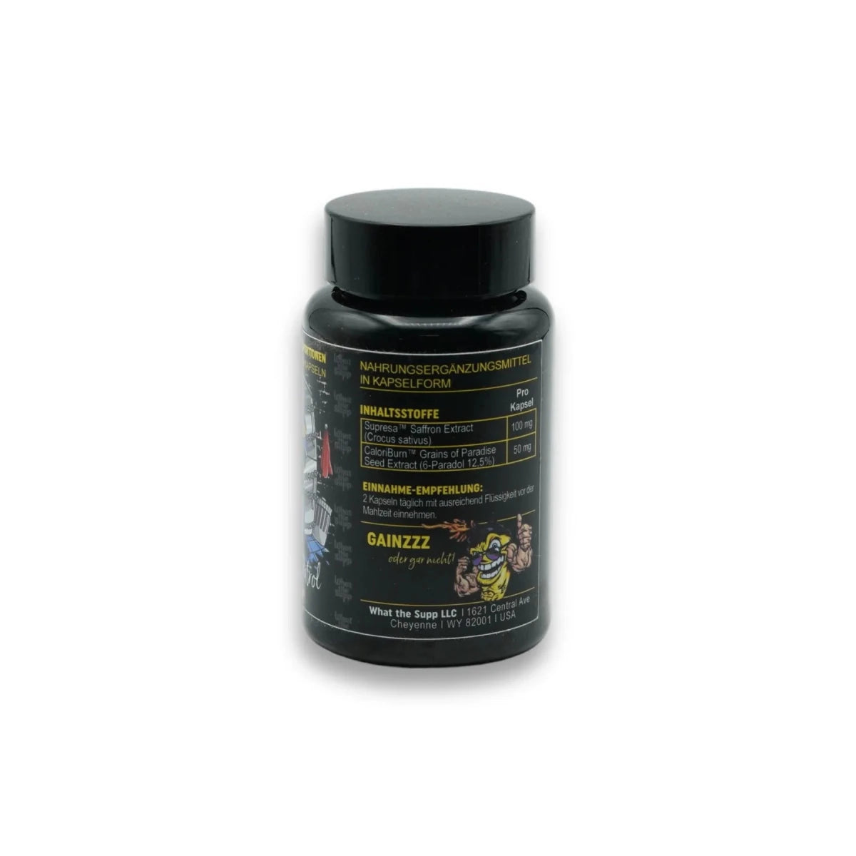Supresa™ Saffron Extract (Crocus sativus), CaloriBurn™ Grains of Paradise Seed Extract (6-Paradol 12,5%), Kapselhülle (Hydroxypropylmethylcellulose), Trennmittel (Magnesiumstearat).